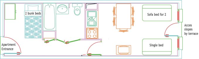 - Living room : 1 single bed (duvet) + 1 sofa bed for 2 (duvet)